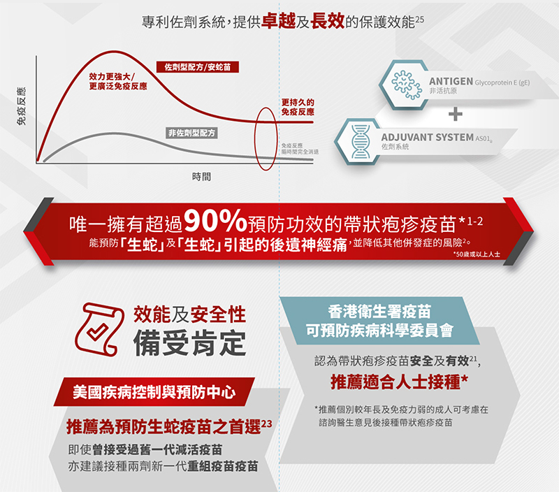 98%的香港成年人曾患水痘,约1/3成人会经历「生蛇」。「生蛇」缠身痛苦难挡,一旦发病,潜藏在体内的病毒会沿着神经线蔓延到皮肤或身体不同部位。有时即使轻轻触碰皮肤,患者都会感觉异常剧痛,需要长期服用止痛药以减轻痛楚,严重影响日常生活和质量。